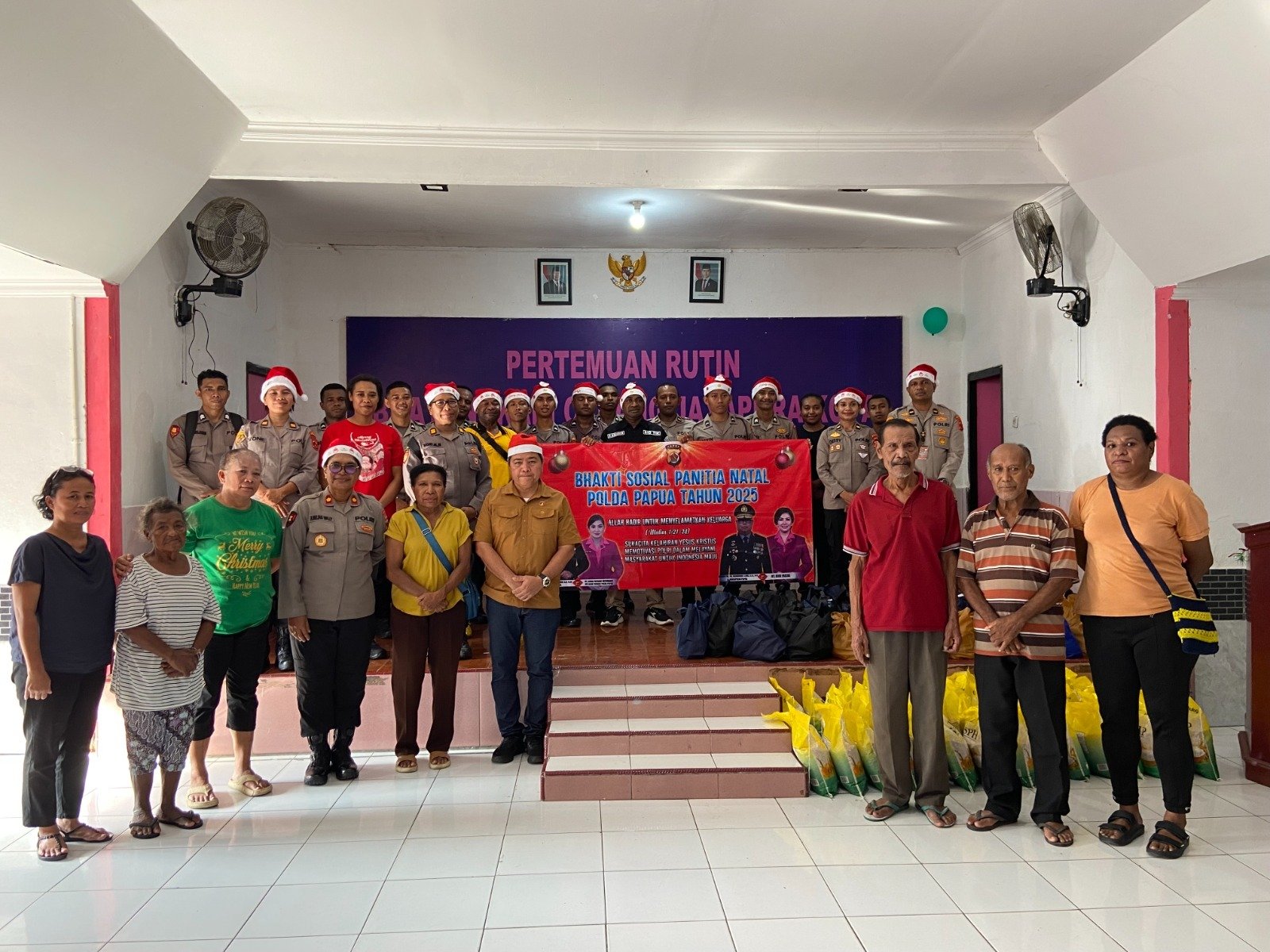 Papua – Dalam rangka memaknai perayaan Hari Raya Natal 2025, Polda Papua melalui Panitia Natal melaksanakan kegiatan pembagian bingkisan Natal sebagai wujud berbagi sukacita dan kepedulian kepada sesama, Jumat (19/12/2025).