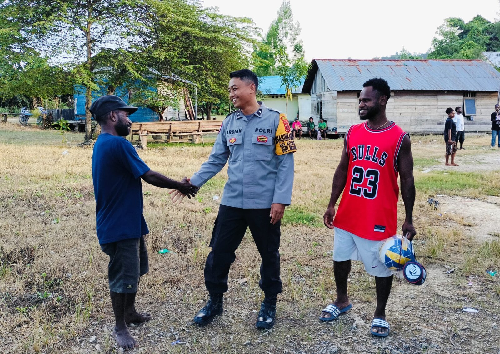 Menyikapi hal itu, Bhabinkamtibmas Aipda Usman Ardian tidak hanya hadir untuk mendengarkan aspirasi warga, namun juga memberikan bantuan alat olahraga berupa net dan bola voli kepada para pemuda Kompleks Gambut.
