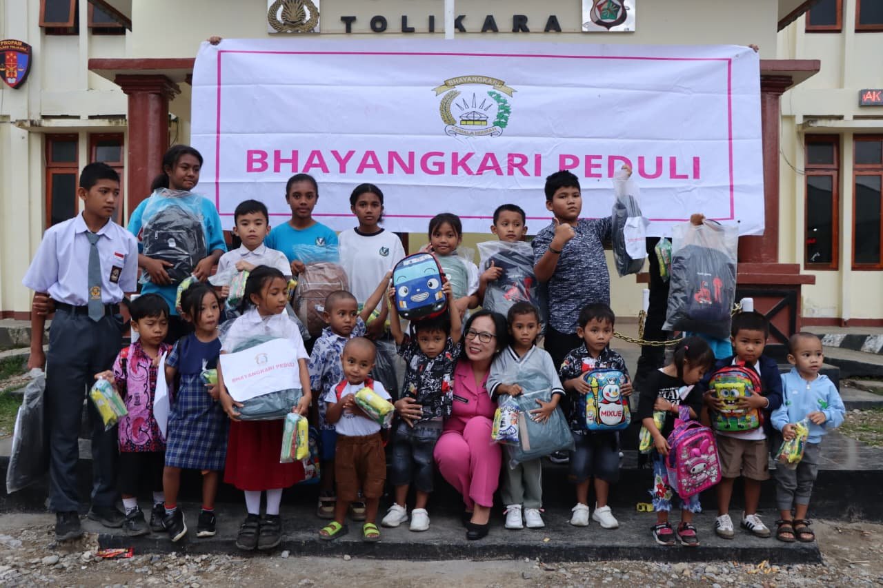 Bantuan sosial yang diberikan berupa tas sekolah, pakaian, serta berbagai perlengkapan anak yang diharapkan dapat membantu menunjang kebutuhan belajar anak-anak di sekolah. Penyerahan bantuan dilakukan secara langsung oleh Ketua Bhayangkari Cabang Tolikara yang didampingi oleh para pengurus Bhayangkari Cabang Tolikara.