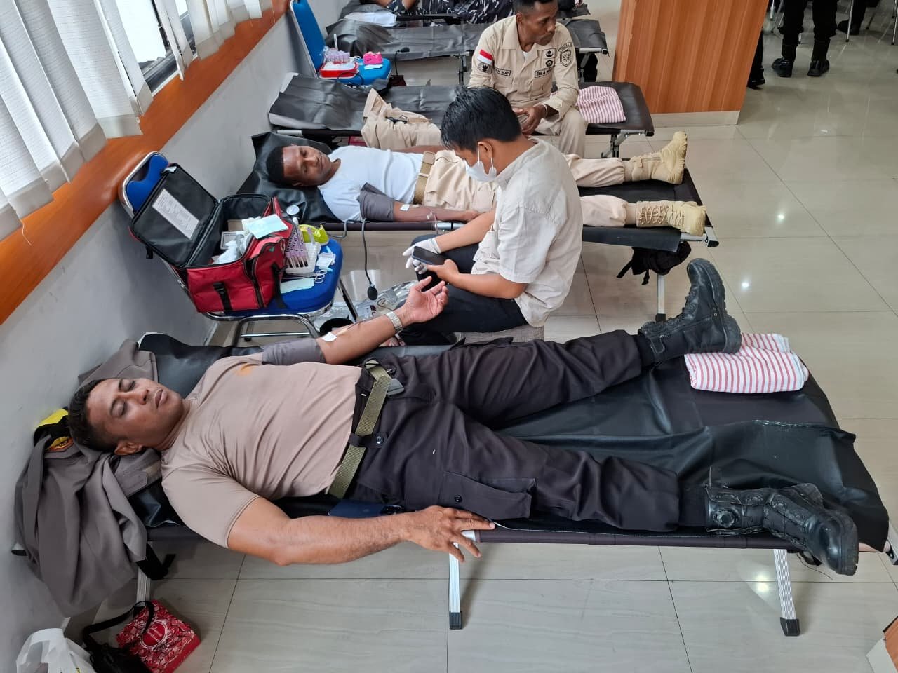 Papua – Dalam rangka memperingati Hari Jadi Ke-74 Humas Polri, jajaran Polresta Jayapura Kota turut ambil bagian dalam kegiatan Bakti Kesehatan Donor Darah yang digelar di Aula Rastra Samara, Mako Polda Lama, kegiatan ini menjadi wujud nyata kepedulian Polri terhadap sesama serta bentuk sinergi antara semangat pengabdian dan nilai kemanusiaan, di mana setiap tetes darah yang disumbangkan menjadi harapan baru bagi kehidupan masyarakat yang membutuhkan, Rabu (22/10) Pagi.