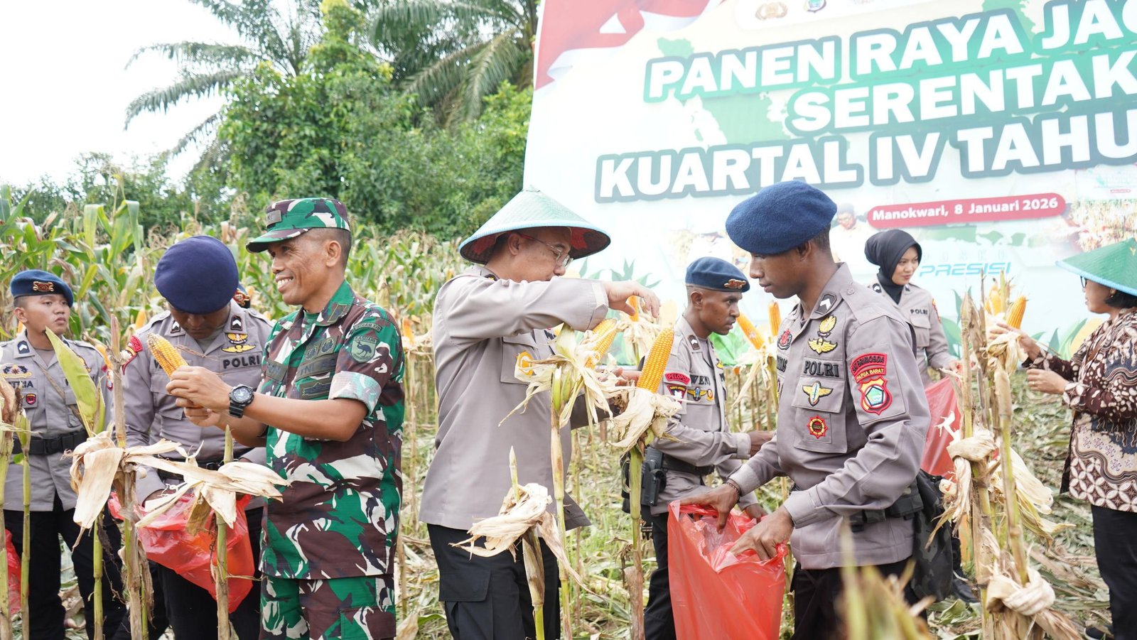 Pelaksanaan panen jagung Kuartal IV Tahun 2025 dipusatkan di Kampung Macuan SP 5, Distrik Masni Utara, dengan luas lahan jagung yang ditanami mencapai 1 hektare dan perkiraan hasil panen sebesar 2 ton. Secara keseluruhan, pada Kuartal IV Tahun 2025, Polda Papua Barat bersama Polres jajaran telah menanami jagung seluas 13 hektare dengan perkiraan hasil panen mencapai 26 ton.