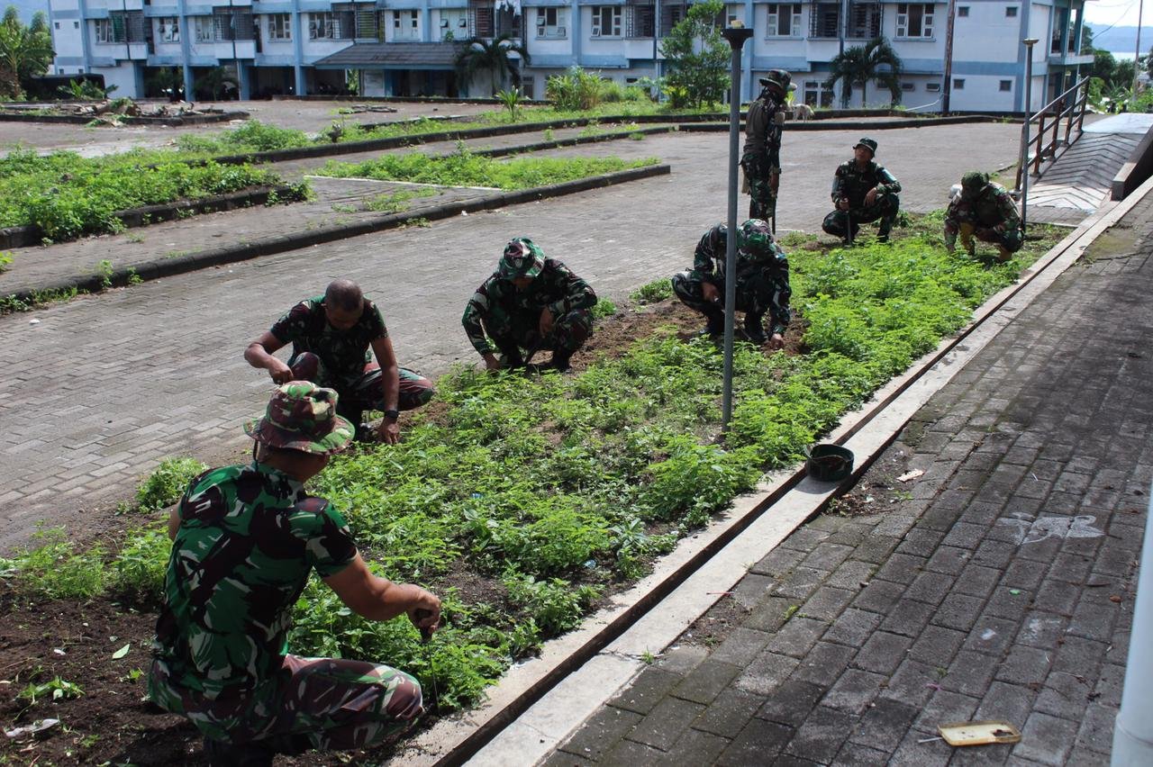 Bitung – Karya bakti pembersihan lokasi Marshalling Area, kembali dilakukan personel Kodim 1310/Bitung bertempat di Rusunawa Tangkoko, Kel. Manembo Nembo Tengah Kec. Matuari Kota Bitung, Sabtu (21/02/2026).
