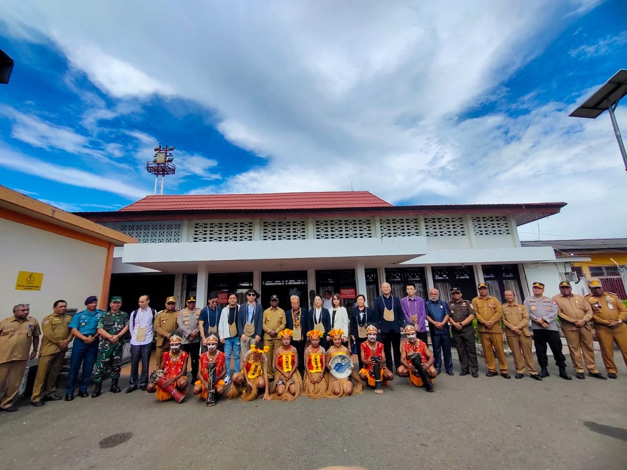Penyambutan berlangsung hangat dan penuh kekeluargaan. Prosesi diawali dengan pemakaian mahkota khas Papua, penyematan noken, serta injak piring sebagai simbol penghormatan dan penerimaan tamu kehormatan oleh Pemerintah Provinsi Papua Barat.