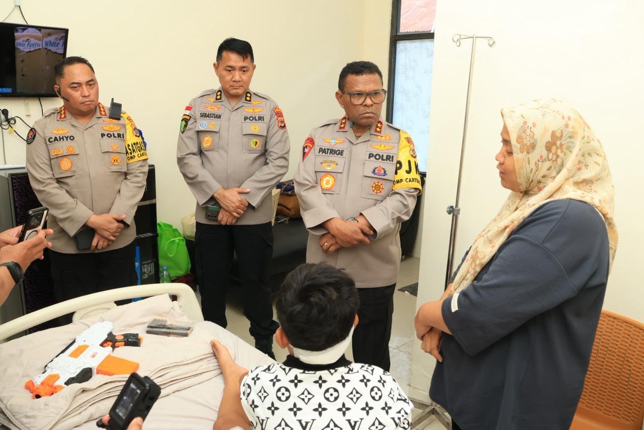 Kapolda Papua beserta rombongan meninjau langsung kondisi dua korban yang masih dirawat di RS Bhayangkara, yakni An. Arsyaka Daffa (9) yang dirawat di Ruang Maleo, serta An. Ativah Muthasaddiqah (8) yang masih dalam perawatan intensif di ruang ICU. Keduanya mengalami luka serius akibat insiden tersebut dan telah mendapatkan penanganan medis intensif dari tim dokter.