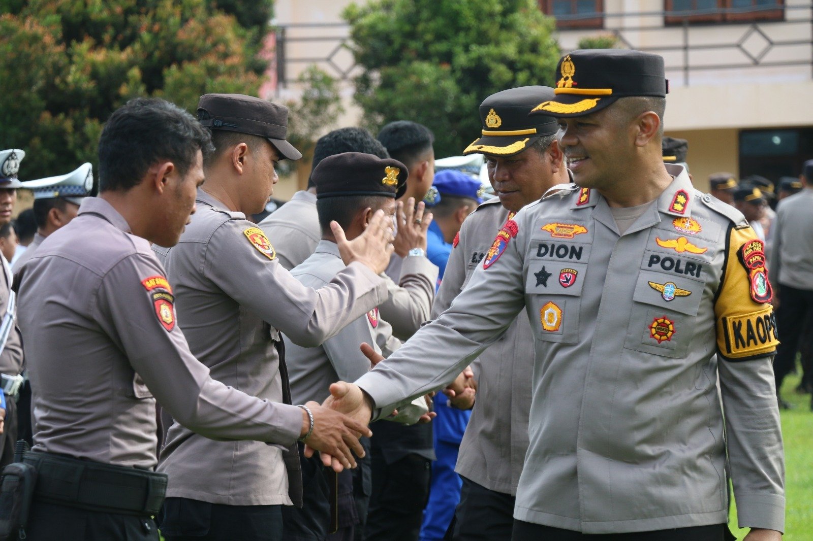Papua – Kapolres Jayapura AKBP Dionisius V.D.P. Helan, S.I.K., M.H., M.Tr.Mil memimpin langsung pelaksanaan apel pagi yang digelar di halaman Mako Polres Jayapura, usai perayaan Hari Raya Idul Fitri 1447 Hijriah, Rabu (25/03/2026).