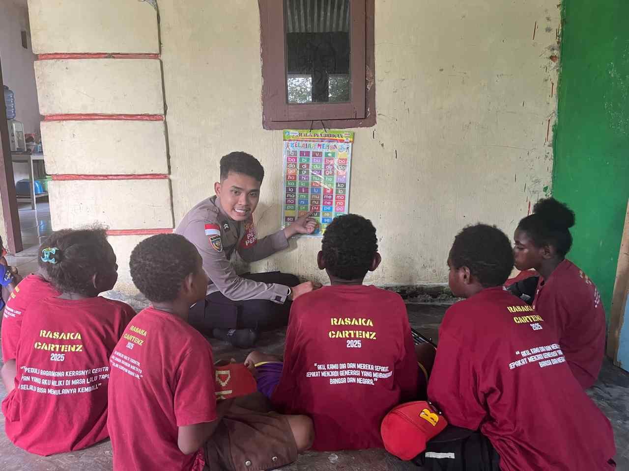 Papua – Satgas Siipar Polres Yahukimo menggelar kegiatan belajar mengajar bagi anak-anak di Jalan Sosial Matoa Distrik Dekai, Jumat (3/10/2025).