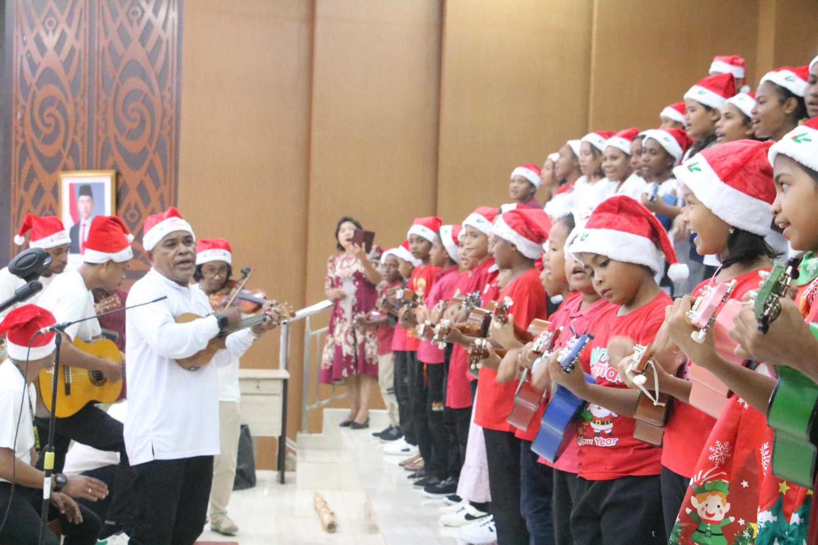 Papua – Pemerintah Provinsi Papua melaksanakan Natal Bersama Tingkat Provinsi Papua Tahun 2025 yang berlangsung khidmat dan penuh sukacita di Aula Sasana Krida, Kantor Gubernur Papua, Senin (15/12/2025). Kegiatan ini menjadi momentum kebersamaan lintas elemen masyarakat dalam mempererat persaudaraan, toleransi, dan persatuan di Tanah Papua.
