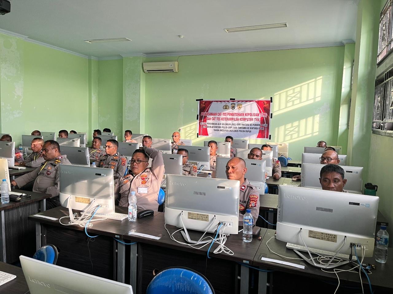 Papua – Polda Papua melalui Biro SDM Polda Papua melaksanakan kegiatan Computer Assisted Test (CAT) Tes Pengetahuan Kepolisian (TPK) dan CAT Tes Keterampilan Komputer (TKK) dalam rangka Seleksi Pendidikan Alih Golongan (PAG) dari Bintara ke Perwira Polri T.A. 2025/2026, pada Jumat (10/10/2025).