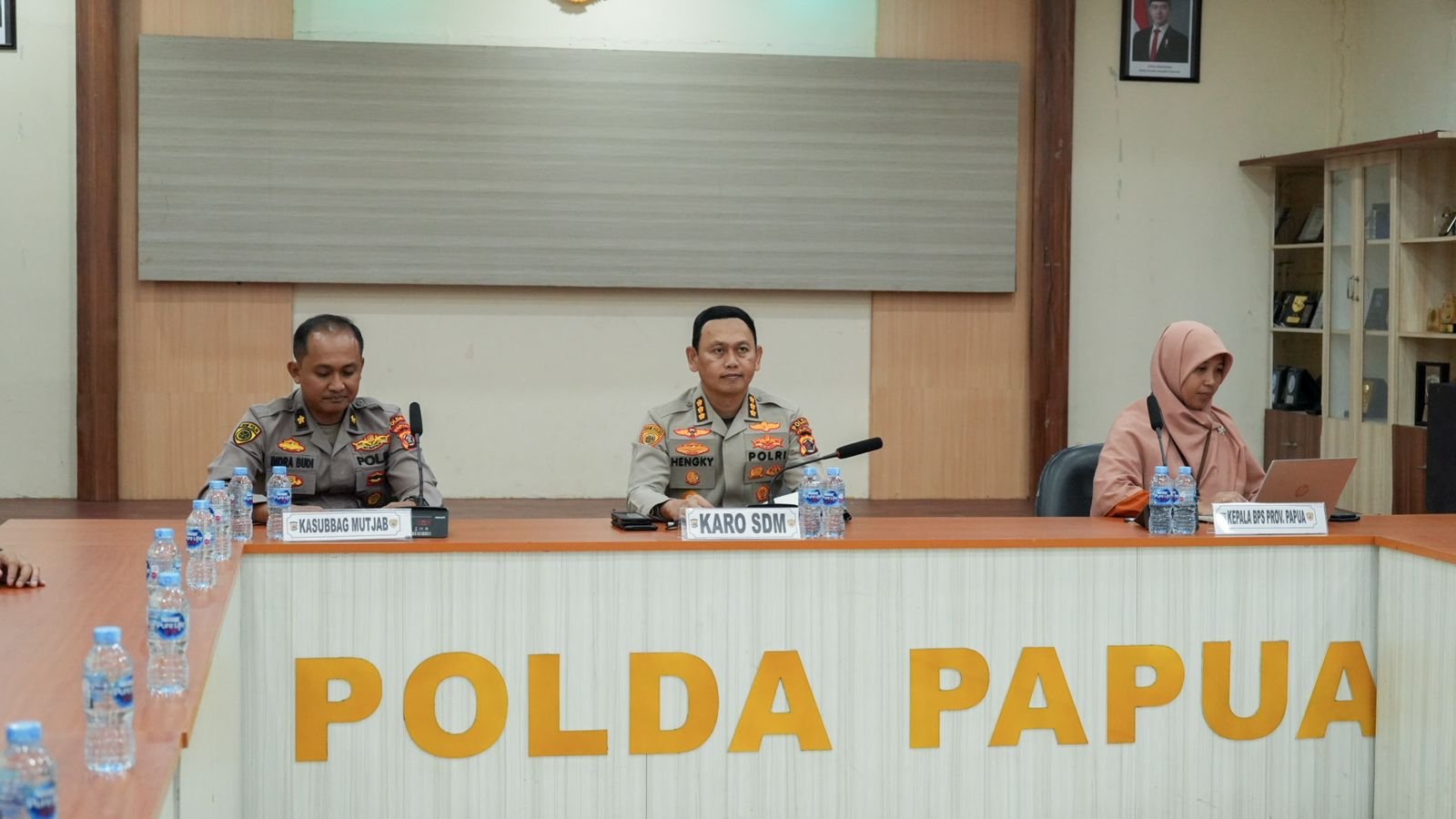 Turut hadir mengikuti daring dari Polda Papua, Karo SDM Polda Papua, Kombes Pol. Hengky Pramudya, S.I.K., M.Si, Staf Ahli Muda BPS Provinsi Papua, Mety Irjayanti, Kompol Indra Budi Wibowo, S.I.K., M.M., bertempat di Aula Rupatama Polda Papua, Kota Jayapura, Rabu (10/09/2025).