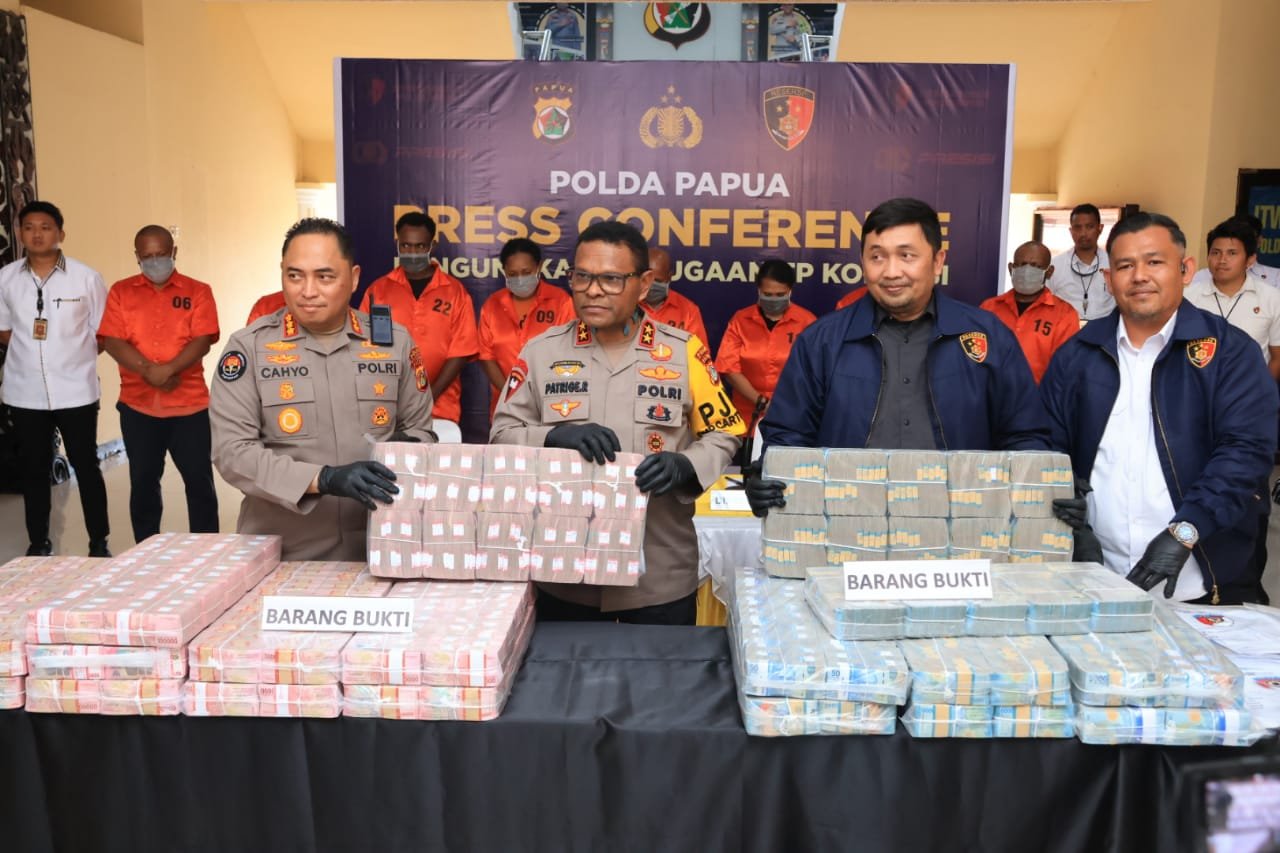 Papua – Kepolisian Daerah Papua melalui Direktorat Reserse Kriminal Khusus menggelar Press Conference terkait pengungkapan perkara dugaan tindak pidana korupsi Dana Desa dan Alokasi Dana Desa Kabupaten Lanny Jaya Tahun Anggaran 2022 sampai dengan 2024 yang mengakibatkan kerugian negara sebesar Rp168.172.682.675, Kamis (25/09).