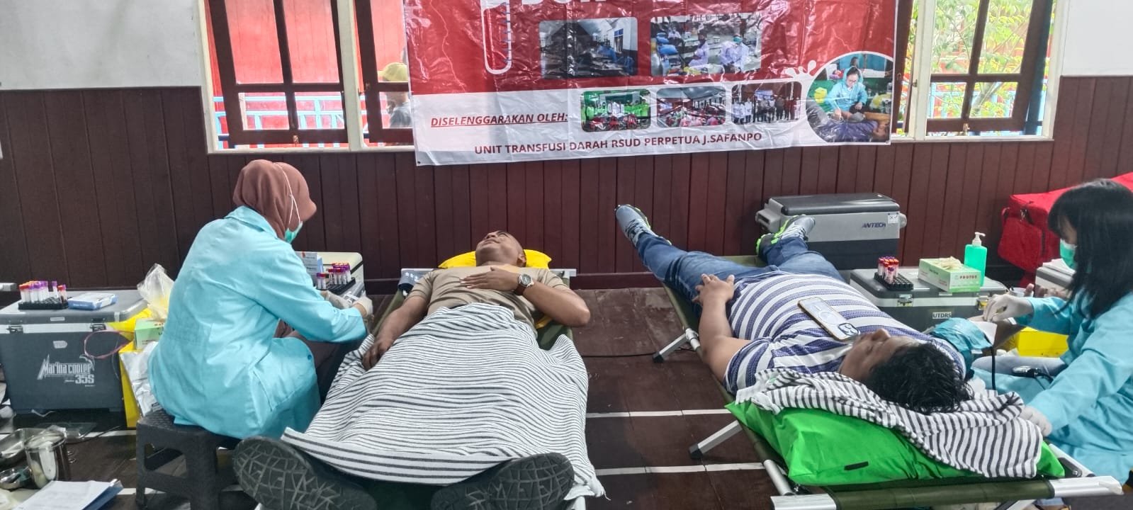Papua – Kapolres Asmat AKBP Wahyu Basuki, S.I.K., melalui Kasi Humas Ipda A. A. Gede Raka Arik Trisna, S.H., hadiri kegiatan Donor Darah dalam rangka Hari Ulang Tahun Persekutuan Pemuda Gereja Persekutuan Indonesia (GPI) Agats Betlehem Agats.