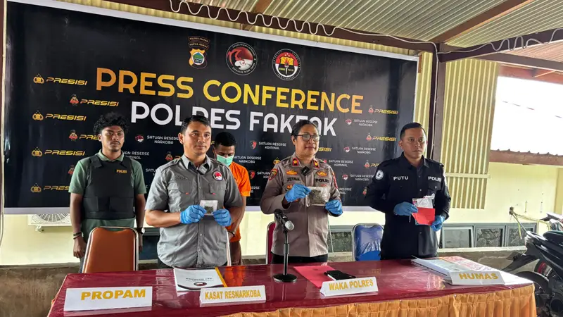 Acara konferensi pers dipimpin langsung oleh Wakapolres Fakfak Kompol Henderjetha H. Yassu, S.H., didampingi Kasat Resnarkoba IPTU Johan Eko Wahyudi, S.Sos., M.H., serta dihadiri oleh pejabat utama Polres Fakfak, antara lain Kasi Propam IPTU Dodik Junaidi, S.Sos., M.H. dan Kasi Humas IPTU I Putu Ajustya Sandivtha, S.H.