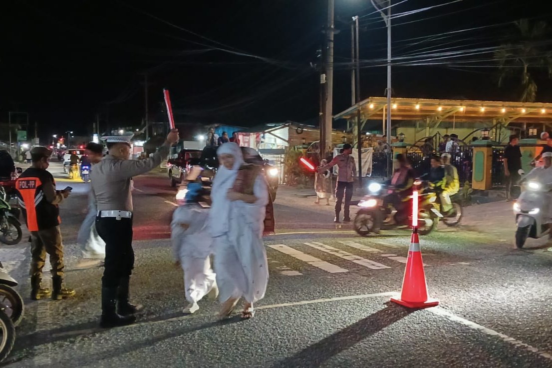 mengatur arus lalu lintas, menyeberangkan masyarakat di jalan raya, dan berpatroli diseputaran masjid semata mata dilakukan guna memastikan agar pelaksanaan shalat tarawih berjalan aman khusu dan lancar hingga selesai.