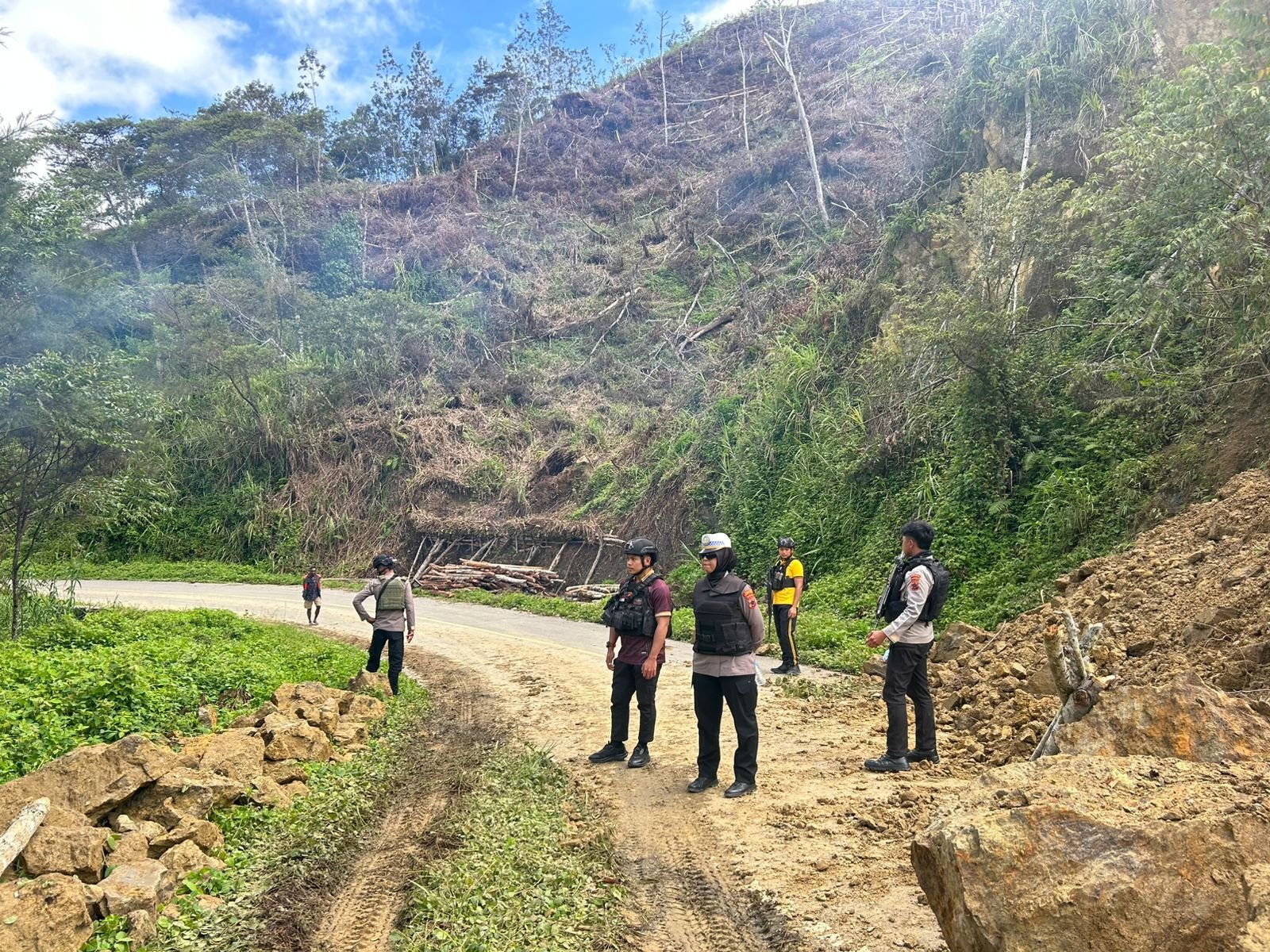 Setibanya di lokasi, personel langsung melakukan pengamanan dan membantu masyarakat yang tengah membersihkan material longsoran secara manual agar kendaraan dapat melintas secara terbatas dari arah Tiom–Wamena maupun sebaliknya. Setelah situasi dinyatakan aman dan terkendali, personel kembali ke Mapolres.