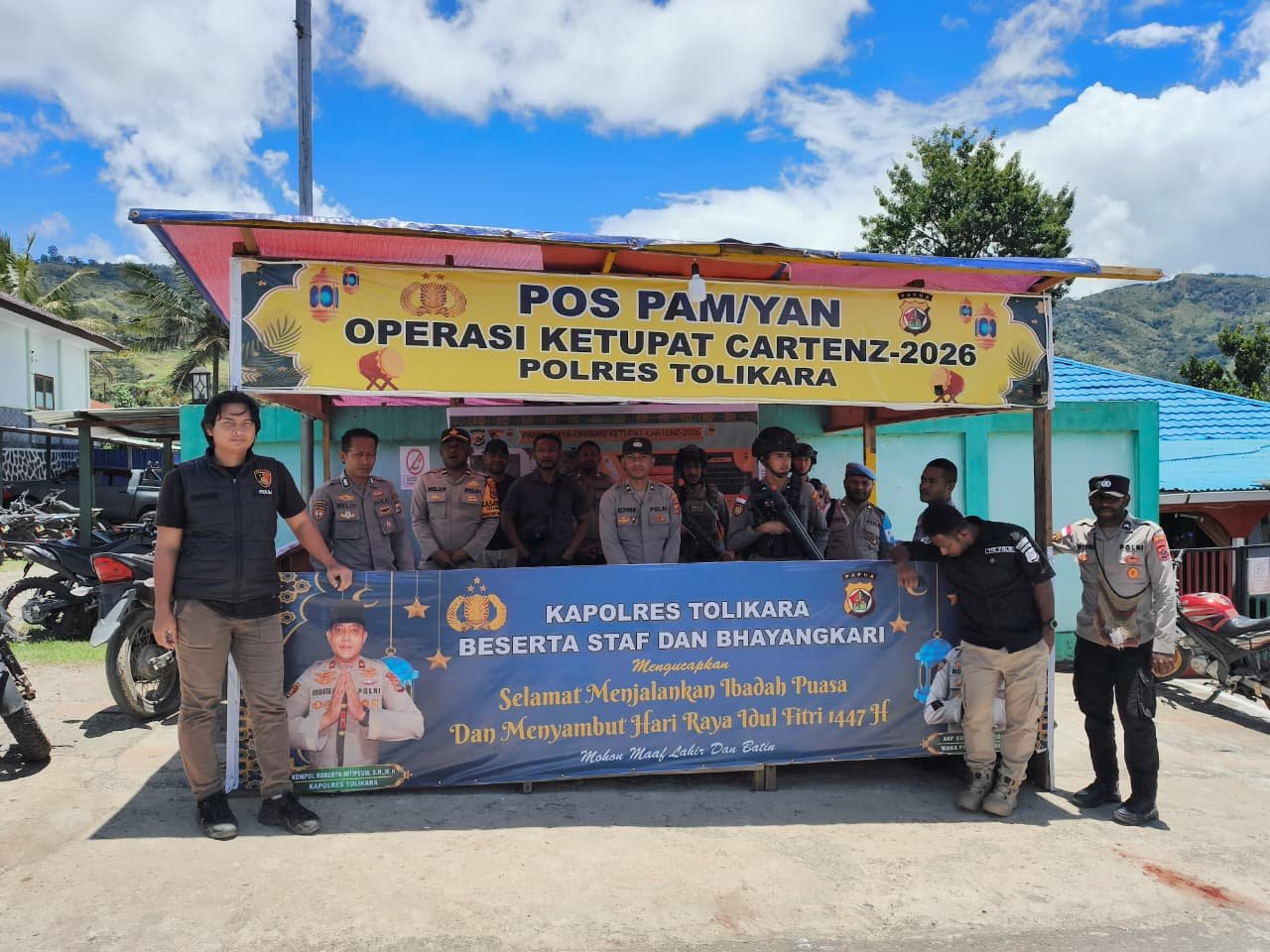 Papua – Memasuki hari kedua Hari Raya Idul Fitri 1447 H, Polres Tolikara terus mengintensifkan pengamanan dalam rangka Operasi Ketupat Cartenz 2026 guna memastikan situasi keamanan dan ketertiban masyarakat (kamtibmas) tetap aman dan kondusif, Minggu (22/03/2026).