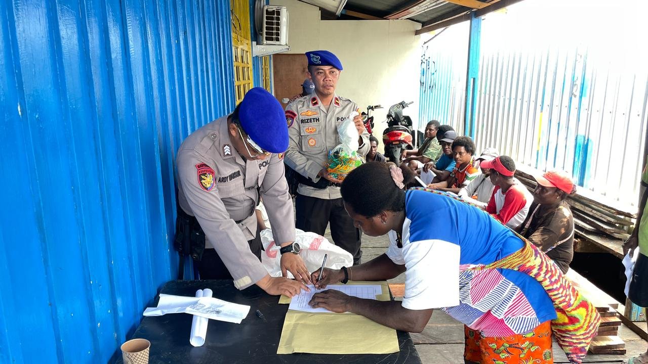 Papua – Kapolres Asmat AKBP Wahyu Basuki, S.I.K., melalui Kasat Polairud Ipda Rizeth Sion Paotonan, S.H., berikan bantuan jaring kepada kelompok nelayan di Kampung Yepem Dan Kampung Syuru, Bertempat Di Mako Sat Polairud Polres Asmat, Jumat (30/10/2025).