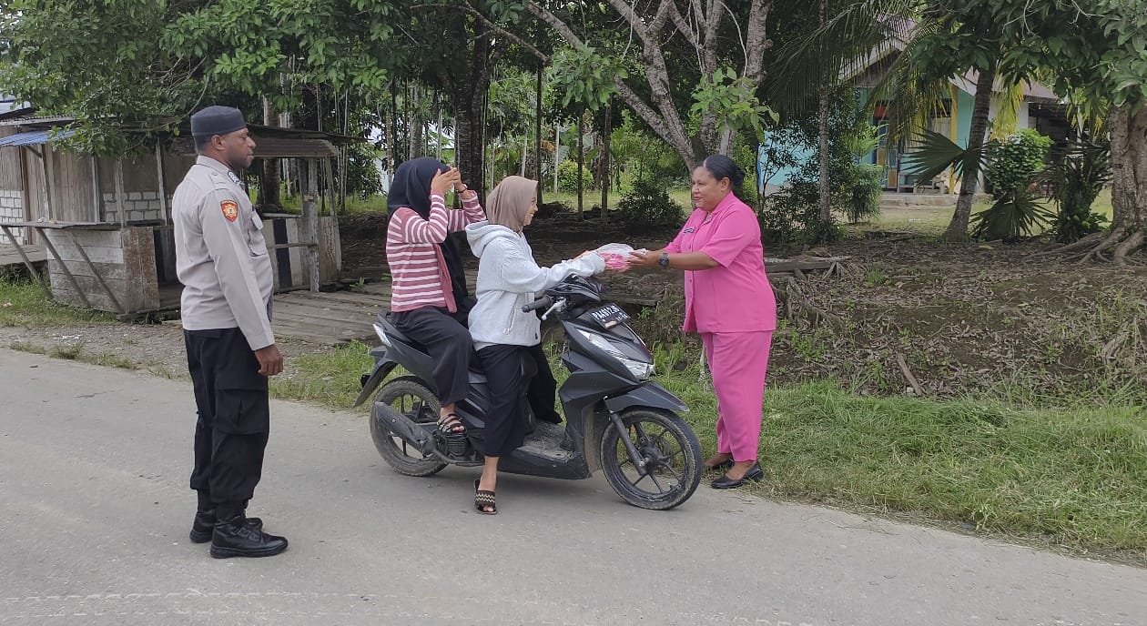 Papua – Dalam rangka berbagi berkah di bulan suci Ramadhan, Polsek Bonggo melaksanakan kegiatan pembagian takjil kepada masyarakat yang melintas di depan Mapolsek Bonggo, Sabtu (14/3/2026).