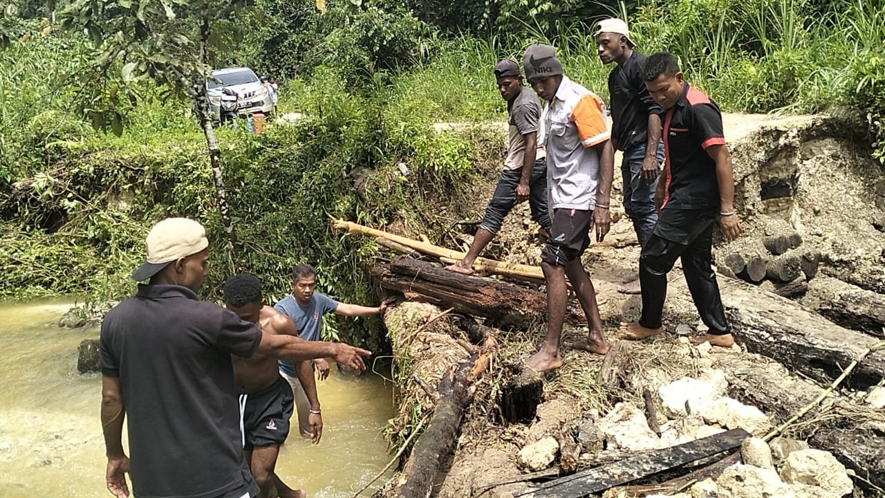 Papua – Pada hari Sabtu tanggal 22 November 2025, Pukul 10.00 wit, Kapolsek Demta Ipda Ignatius Sepbiantoro, S.H. bersama Ps. Kasium Polsek Demta Bripka Chairul Marwan dan bergerak cepat menanggapi laporan warga terkait jembatan yang putus di KM 09 Distrik Demta. Kondisi tersebut membuat akses jalan tidak bisa dilalui, sehingga jalur menuju wilayah Demta terputus.
