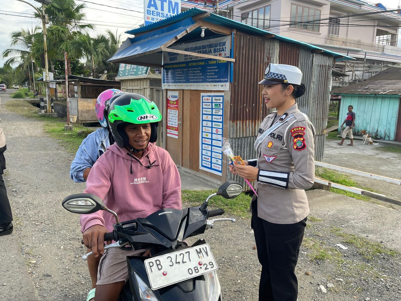 Papua – Suasana berbeda terlihat di depan Mapolda Papua pada Senin (1/9/2025) sore. Dalam rangka memperingati Hari Ulang Tahun (HUT) ke-77 Polisi Wanita (Polwan), jajaran Polwan Polda Papua menggelar aksi simpatik dengan membagikan bunga dan cokelat kepada para pengendara.