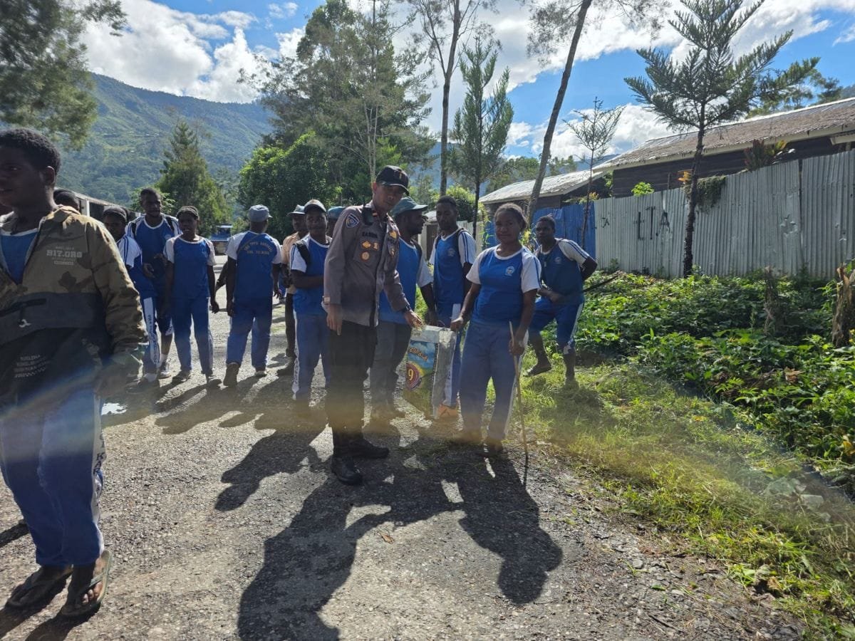 Papua – Dalam rangka mendukung Gerakan Indonesia ASRI (Aman, Sehat, Resik, dan Indah) yang dicanangkan Presiden Republik Indonesia Prabowo Subianto, Sat Binmas Polres Tolikara melaksanakan kegiatan kerja bakti bersama siswa-siswi SMA YPPGI, Sabtu (07/02/2026).