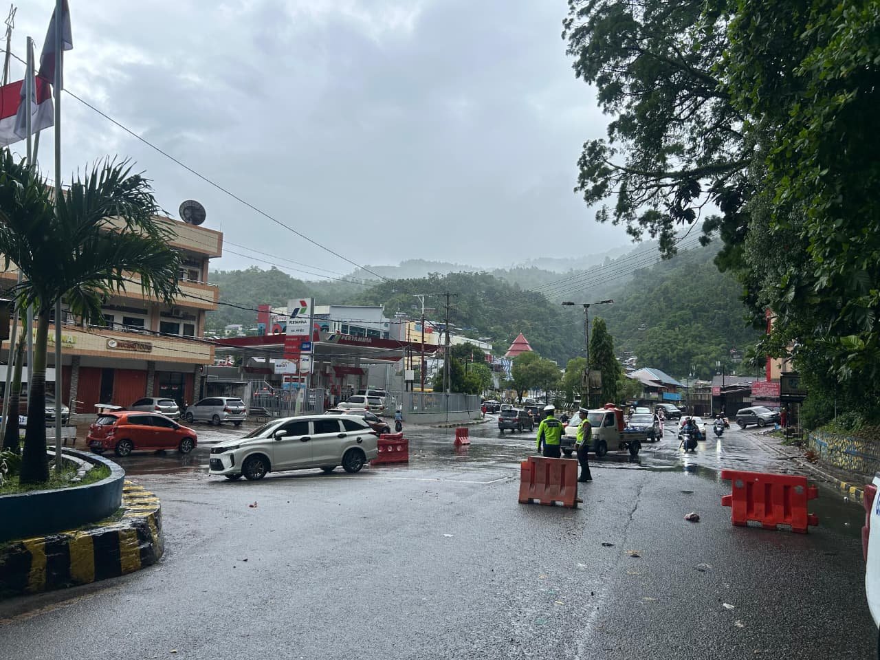 Kegiatan pembersihan dipimpin langsung oleh Kasatgas Kamseltibcarlantas Operasi Lilin Cartenz 2025, AKBP Marthin W. Asmuruf, S.Sos., M.M, didampingi Kasubsatgas Patroli dan Pengaturan AKP Lamasi, serta melibatkan delapan personel Satgas Kamseltibcarlantas. Personel bergerak cepat melakukan pemotongan dan evakuasi batang serta ranting pohon yang tumbang, disertai pengaturan arus lalu lintas di sekitar lokasi agar tidak terjadi kemacetan maupun kecelakaan.