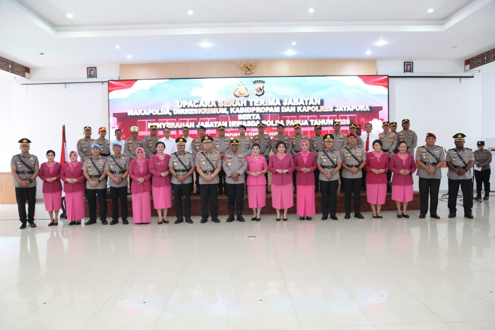 Papua – Polda Papua menggelar Upacara Serah Terima Jabatan Wakapolda Papua, Dirreskrimum, Kabid Propam, Kapolres Jayapura serta Penyerahan Jabatan Irwasda Polda Papua yang dipimpin langsung oleh Kapolda Papua, Irjen Pol. Patrige R. Renwarin, Rabu (18/2/2026). Kegiatan berlangsung khidmat di Aula Rastrasamara Mapolda Papua, Kota Jayapura.