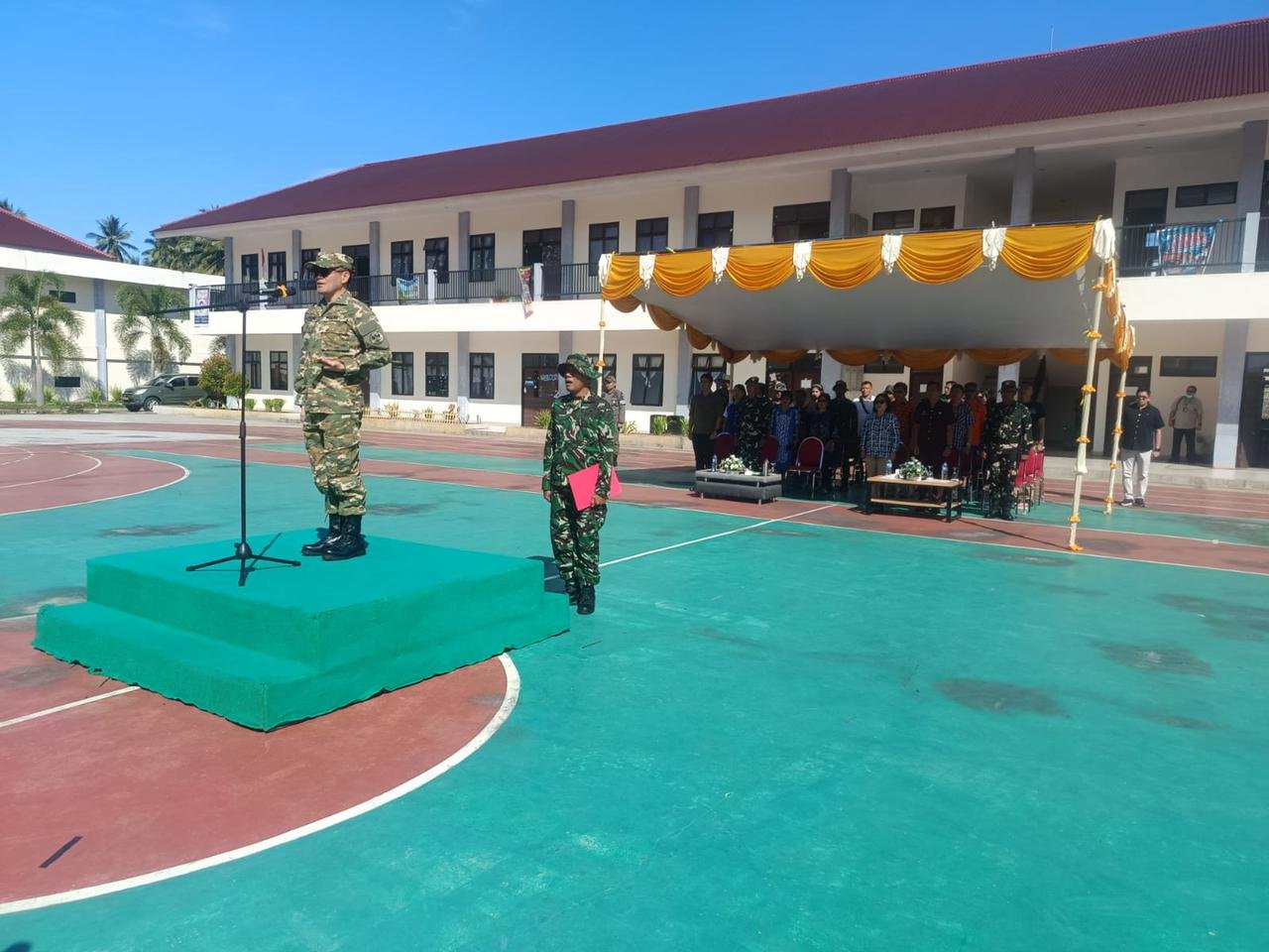 Upacara penutupan dipimpin oleh Bupati Minahasa Utara Joune Ganda, S.E., M.A.P., M.Si., dan Perwira Upacara dijabat Pasi Pers Kodim 1310/Btg Lettu Inf Jakob Yudas, sedangkan Komandan Upacara dijabat Pasi Ter Kodim 1310/Btg Letda Inf Ahyat Saleh serta dihadiri oleh Pabung Minut Kodim 1310/Bitung Mayor Inf Saul Malangkas mewakili Dandim 1310/Bitung, Kadis Pendidikan Minut, Ibu Ir. Jovita Supit M.Si., Staf Ahli Bidang Pemerintahan Setda Kab. Minut, Bpk Edwin Ombuh, S.E., M.Si., Kadis Perhubungan Kab. Minut, Bpk Boby Nayoan, S.Sos., Camat Kalawat, Agus W. Dondokambey, S.SPt. M.A.P., Kaban Kesbangpol Kab. Minut diwakili Kabid Penanganan Konflik dan Penanganan Nasional, Bpk Julius Mantiri, S.E., Para Danramil Jajaran Kodim 1310/Btg, Kapolsek Airmadidi diwakili Wakapolsek Airmadidi, Ipda Viksa Wawo, Para Pasi Jajaran Kodim 1310/Btg. Kadis Pendidikan Daerah cabang Minut – Bitung, Johanis, M.Si., Kepala Sekolah SMK Baramuli, Agustine Kaunang, S.Pd., Kepala SMA Negeri Guru Lombok, Florensia E. A. Rambet, M.Pd., Hukum Tua Desa Kolongan, Johanis Wangania, S.Sos., dan Para Pendukung Anggota Kodim 1310/Btg.