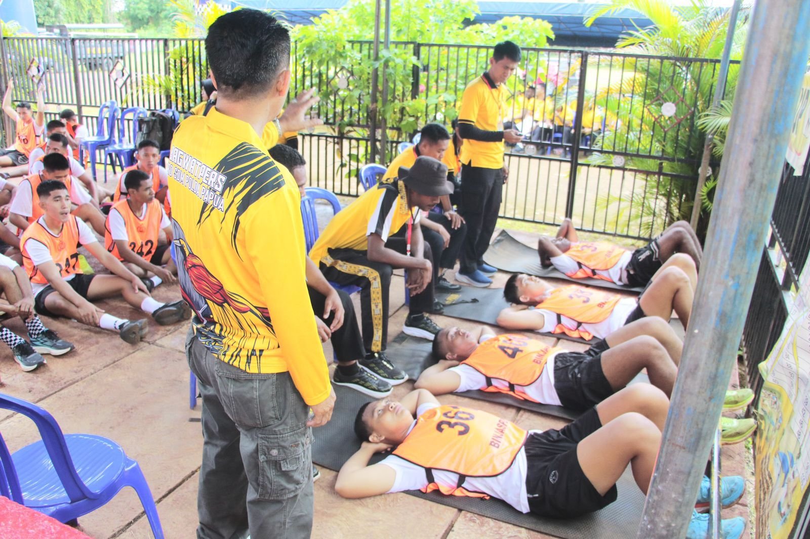 Peserta kemudian dibagi ke dalam enam kelompok dan menjalani rangkaian tes yang diawali dengan pengisian daftar hadir serta pemeriksaan tensi. Selanjutnya dilakukan pemanasan dan pelaksanaan tes lari 12 menit. Penilaian dilanjutkan dengan Pull Up, Push Up, Sit Up, Shuttle Run (lari angka 8), serta tes renang di Kolam Renang Tirta Abe. Kegiatan ditutup dengan pemeriksaan antropometri di Aula Dojo SPN Polda Papua.