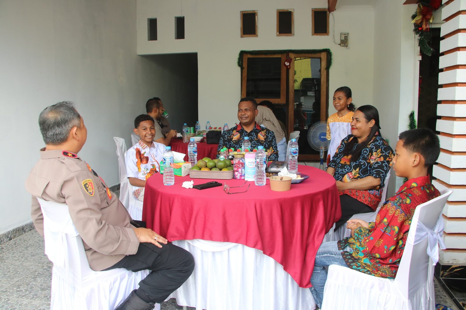 Papua – Di tengah padatnya tugas dan tanggung jawab, Wakapolda Papua Brigjen Pol Dr. Faizal Ramadhani, S.sos., S.I.K., M.H., meluangkan waktu untuk mengunjungi Salah satu anggotanya yang merayakan Natal Ipda Calvin beserta keluarga di Kompleks Perumahan Sentani pada hari kedua perayaan, Jumat, 26 Desember 2025. Kunjungan ini menjadi bentuk perhatian dan kepedulian pimpinan kepada personel yang tengah merayakan momen keagamaan bersama keluarga.