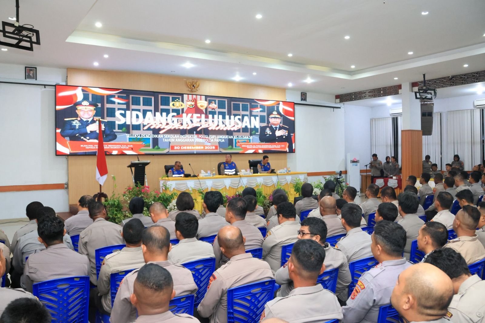 Papua – Wakapolda Papua, Brigjen Pol. Faizal Ramadhani, S.Sos., S.I.K., M.H., memimpin langsung Sidang Kelulusan Tingkat Panitia Daerah (Panda) Seleksi Pendidikan Sekolah Inspektur Polisi (SIP) Angkatan 55 dan 56 Tahun Anggaran 2026. Kegiatan tersebut berlangsung di Aula Rastra Samara Mako Lama Polda Papua, Kota Jayapura, Selasa (30/12) malam.
